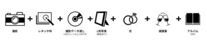 撮影時間はお支度からお開きまでとなります。お仕度のシーンからお開きまで撮影いたします。前撮りをされた方であれば、アルバムのページを10ページ追加いたします。また、アルバムの種類も多数取り揃えておりますのでお気軽にご相談ください。